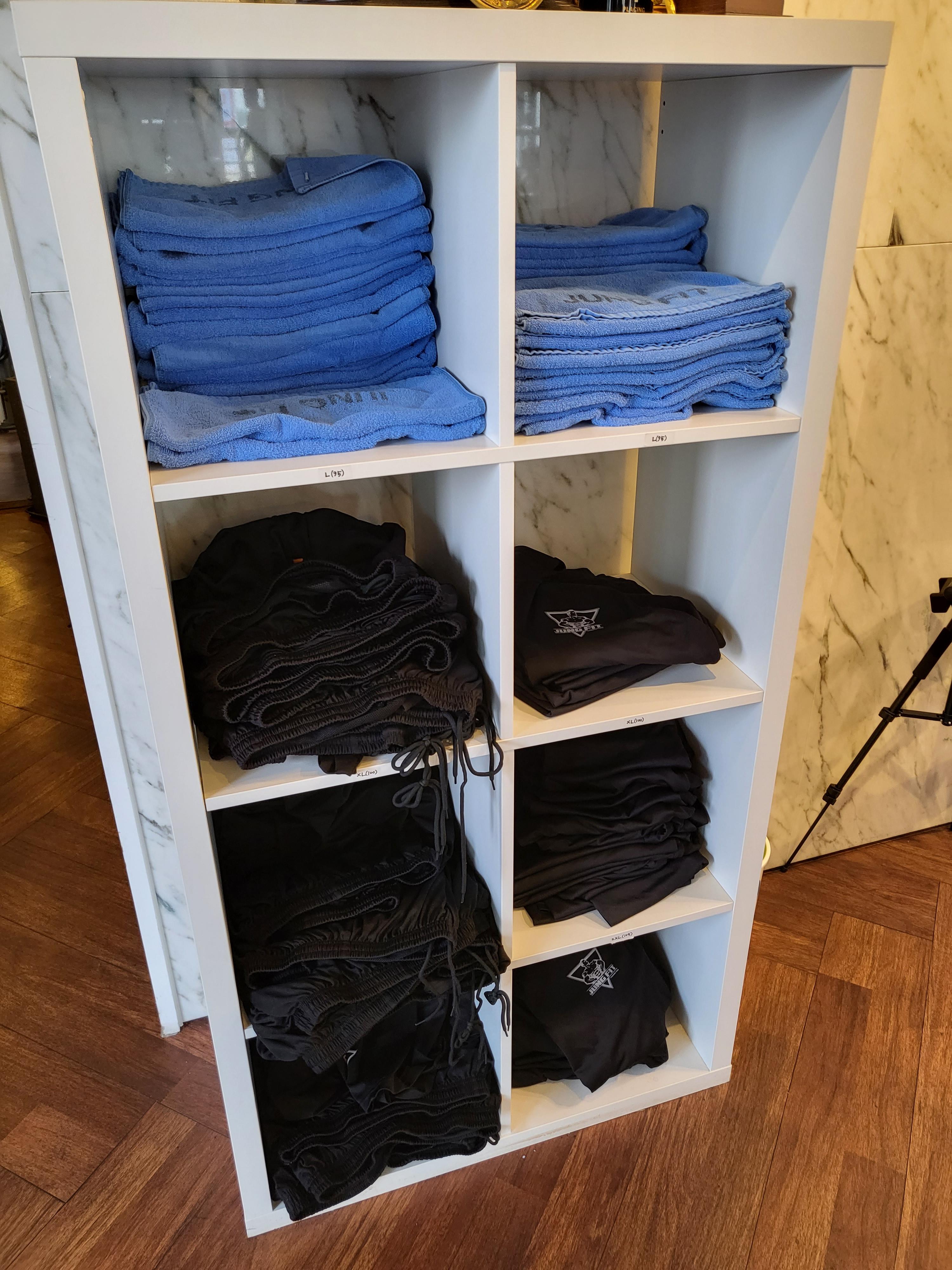 그리고 이렇게 옷도 사이즈별로 준비되어있어서 정말 운동만 하러 몸만 와도 되는 곳이에요.