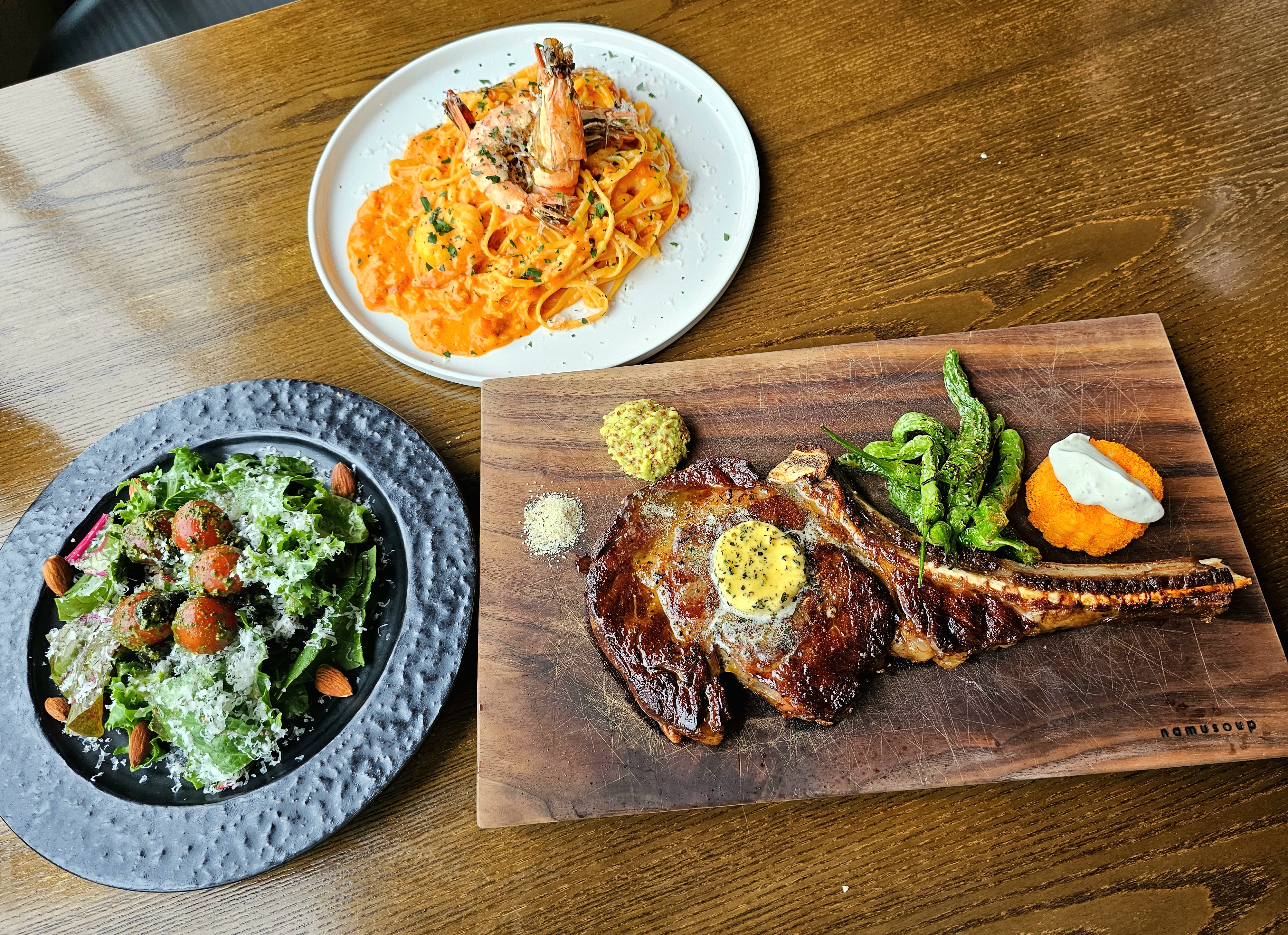 토마호크는 말해 뭐 해 너무너무 맛있고 파스타와 샐러드까지 정말 강추해요!