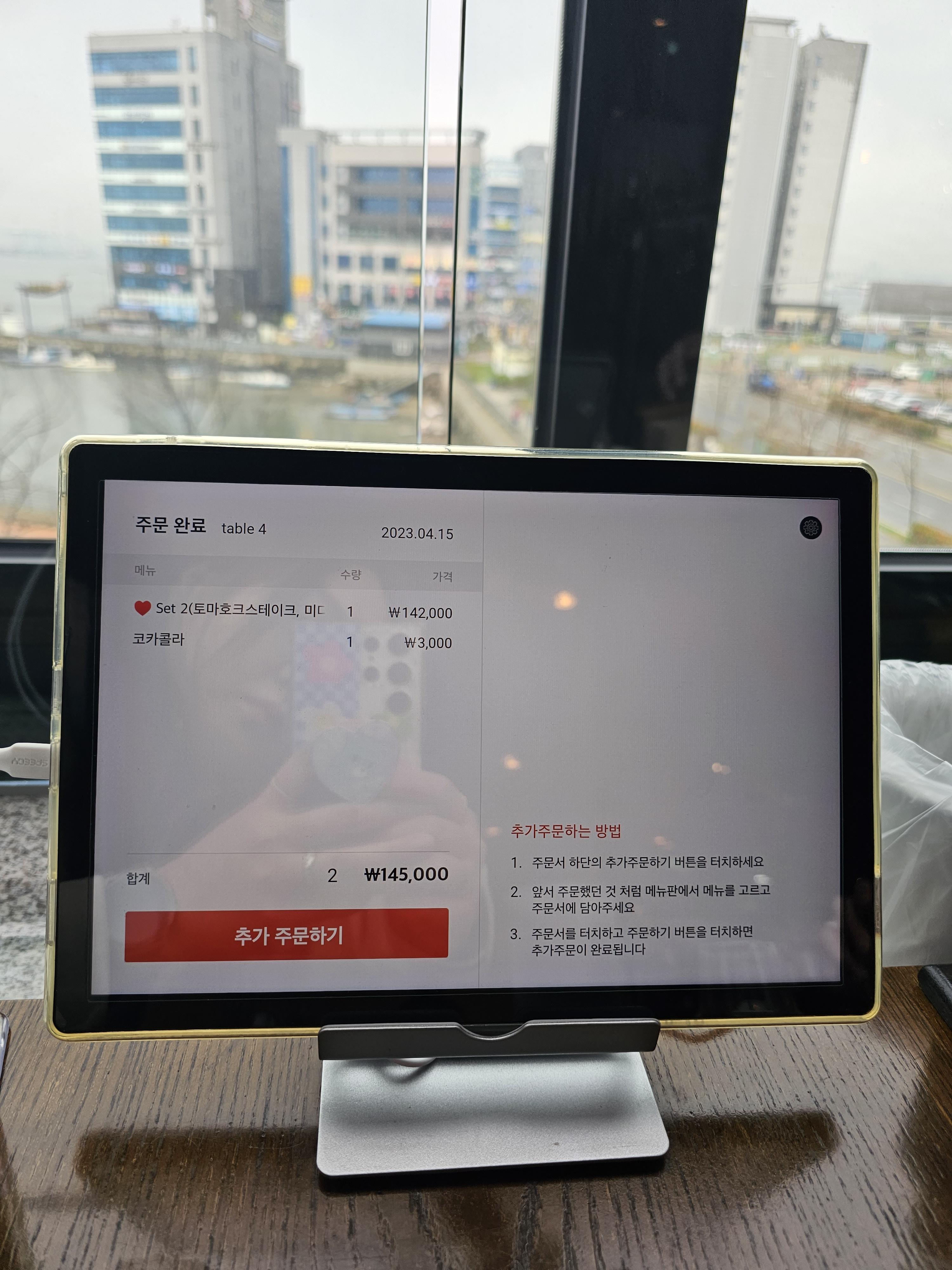 주문은 자리에서 패드로 하면 되고 토마호크 스테이크 세트로 주문하였어요~
