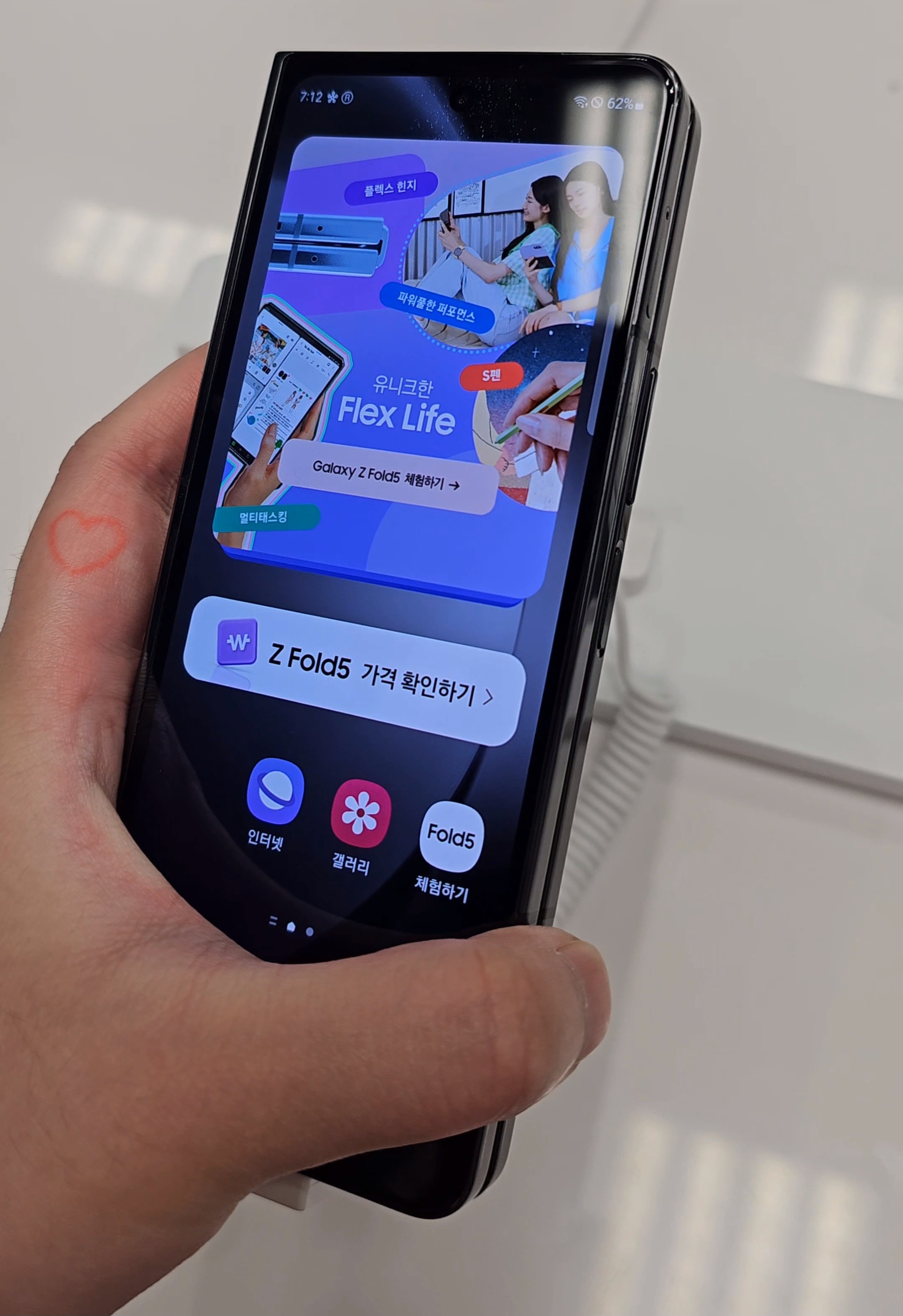 확실히 폴드는 화면이 큰 게 장점인 만큼 한 손으로 열고 닫기가 힘들더라고요.