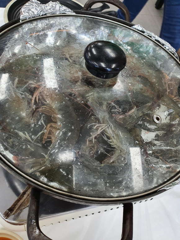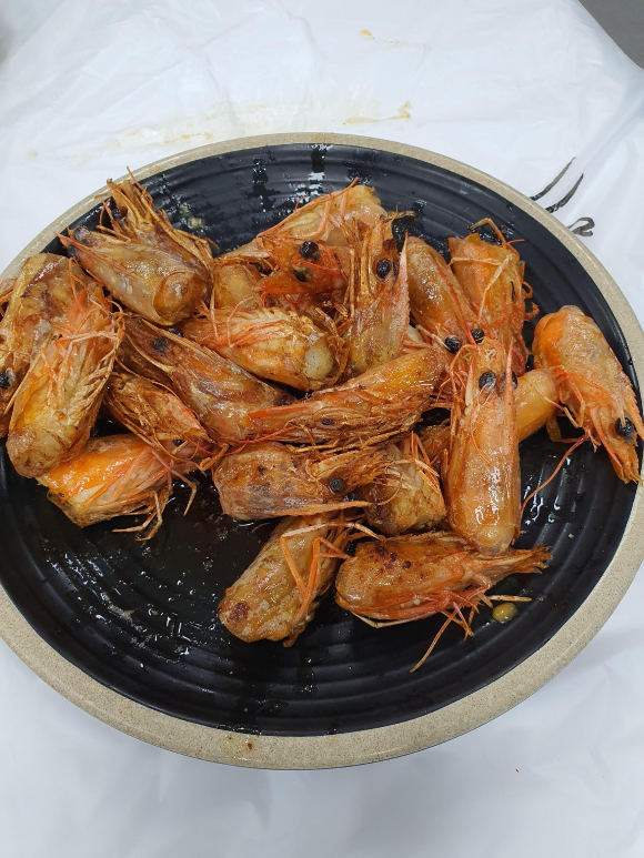 처음 먹어본 대하 머리 버터구이.