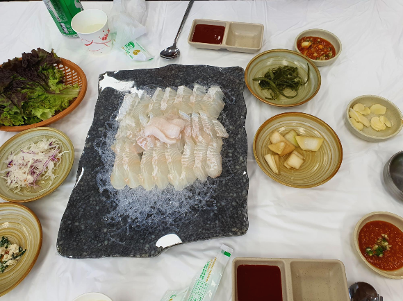 새우가 익어가는 동안 나온 광어! 양이 얼만큼인지는 모르고... 그냥 2만 원어치 주문.