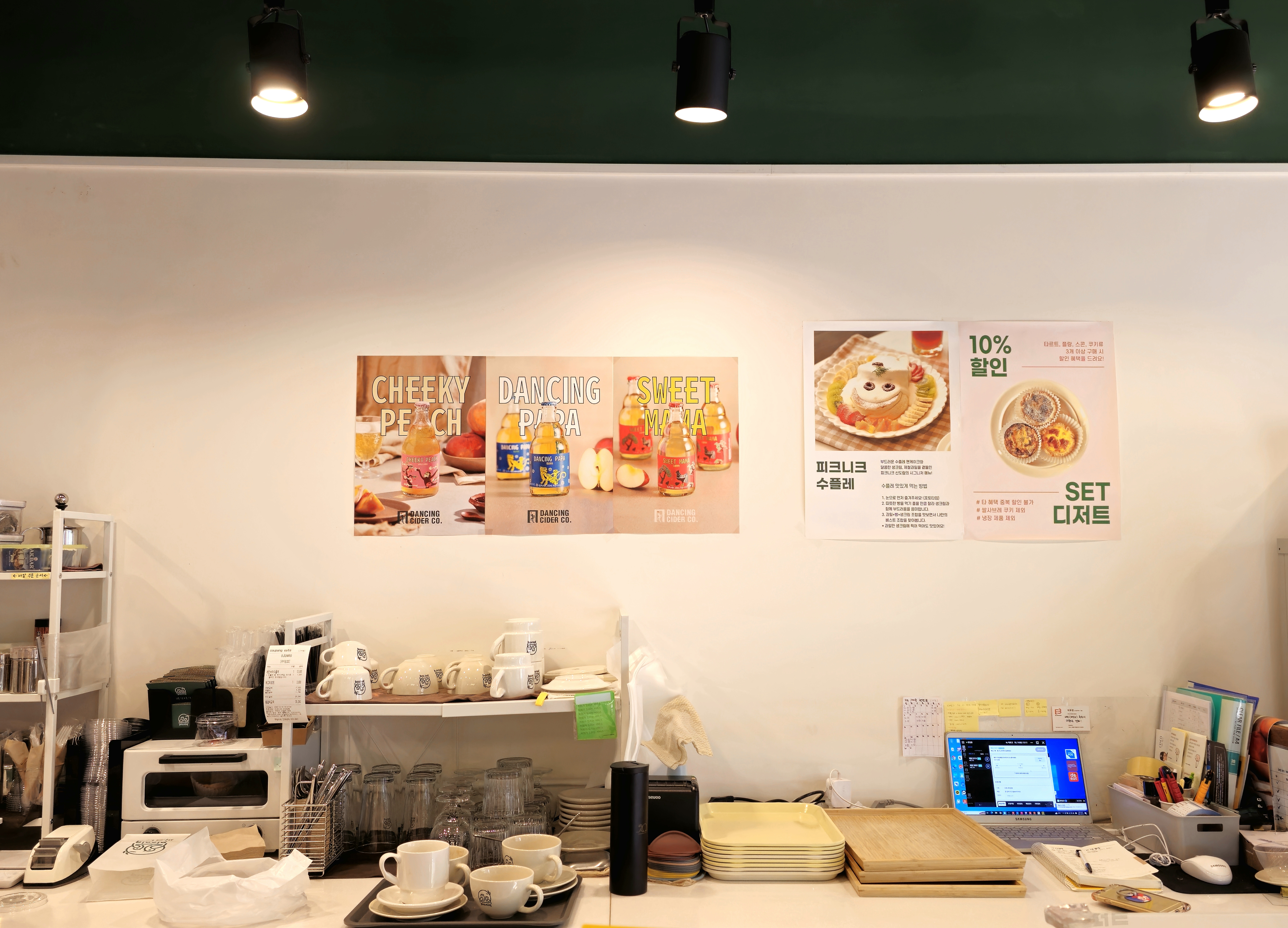 카운터 쪽 찍어보았어요. 메뉴판도 있으니 참고하세용!