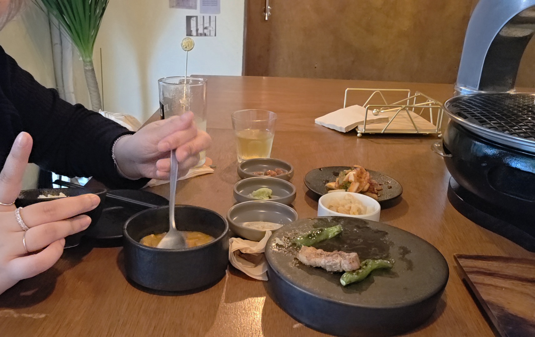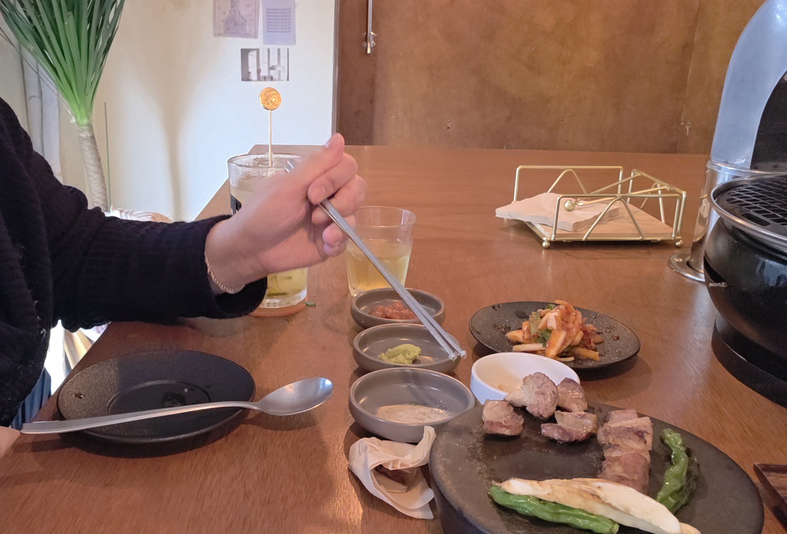 앞에서 사장님이 직접 고기 구워주시고 같이 스몰 토크하면서 밥 먹어서 외롭지 않았어요~