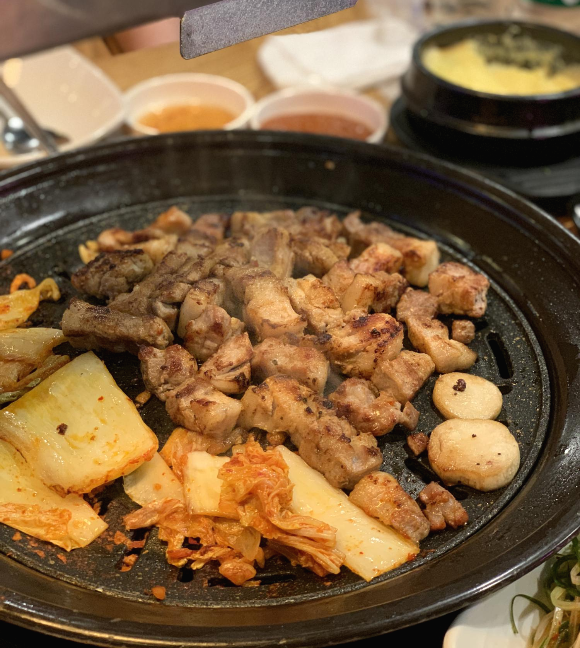 역시 언제나 음식 사진은 힘들게 합니다ㅠㅠ 김치랑 버섯이랑 고기랑 정말 맛있게 구워지고 있었네요...