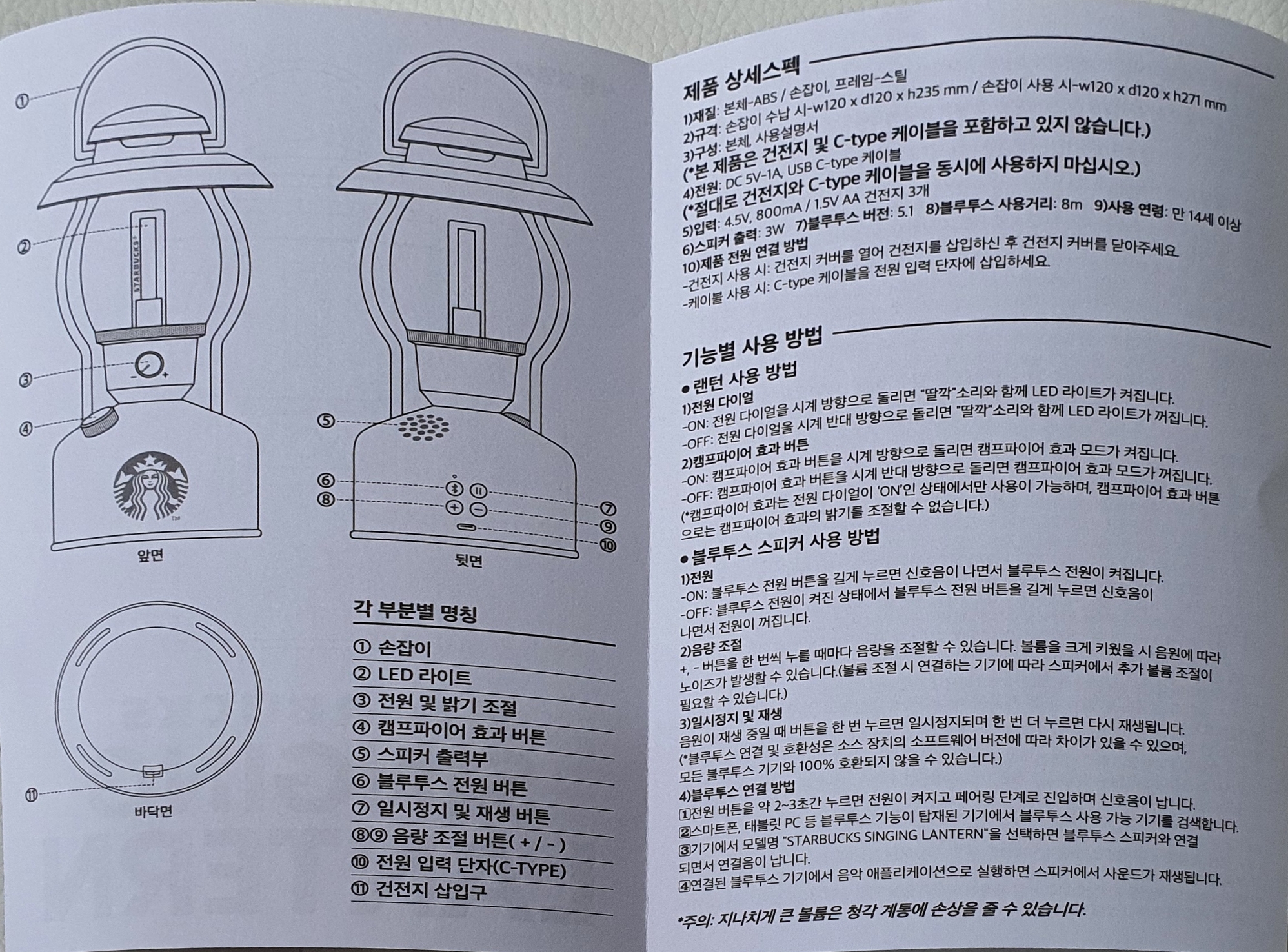 위에 설명서가 전부가 아니니 랜턴 안에 들어있는 설명서 전체를 봐주세요~
